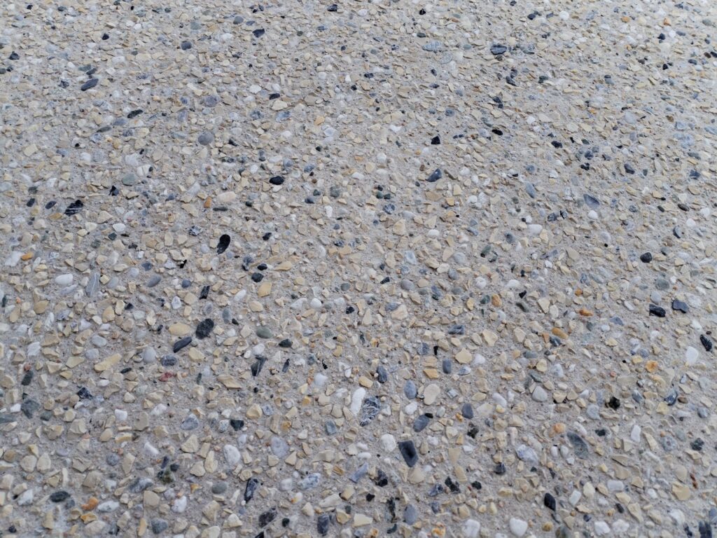 Le béton désactivé, souvent appelé béton lavé, est apprécié pour son aspect granuleux et décoratif.