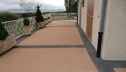 RÉSINE PÉPITE est un revêtement composé d’une résine méthacrylate bi-composant appliquée sur un support sain sur lequel sont saupoudrés manuellement des agrégats de marbre pour une épaisseur moyenne de 5 mm, donc sans élévation significative des niveaux.