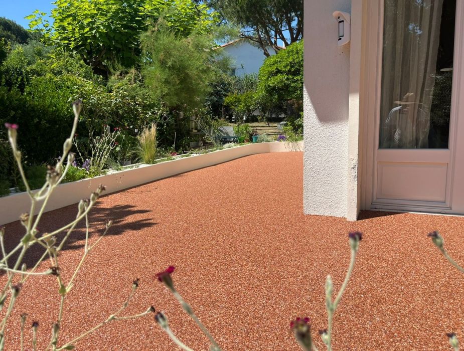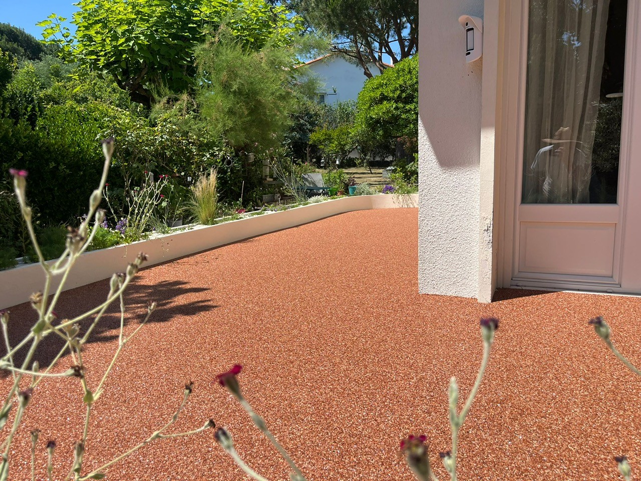 Remplacement des graviers par une moquette de pierre carrossable, drainante et esthétique.