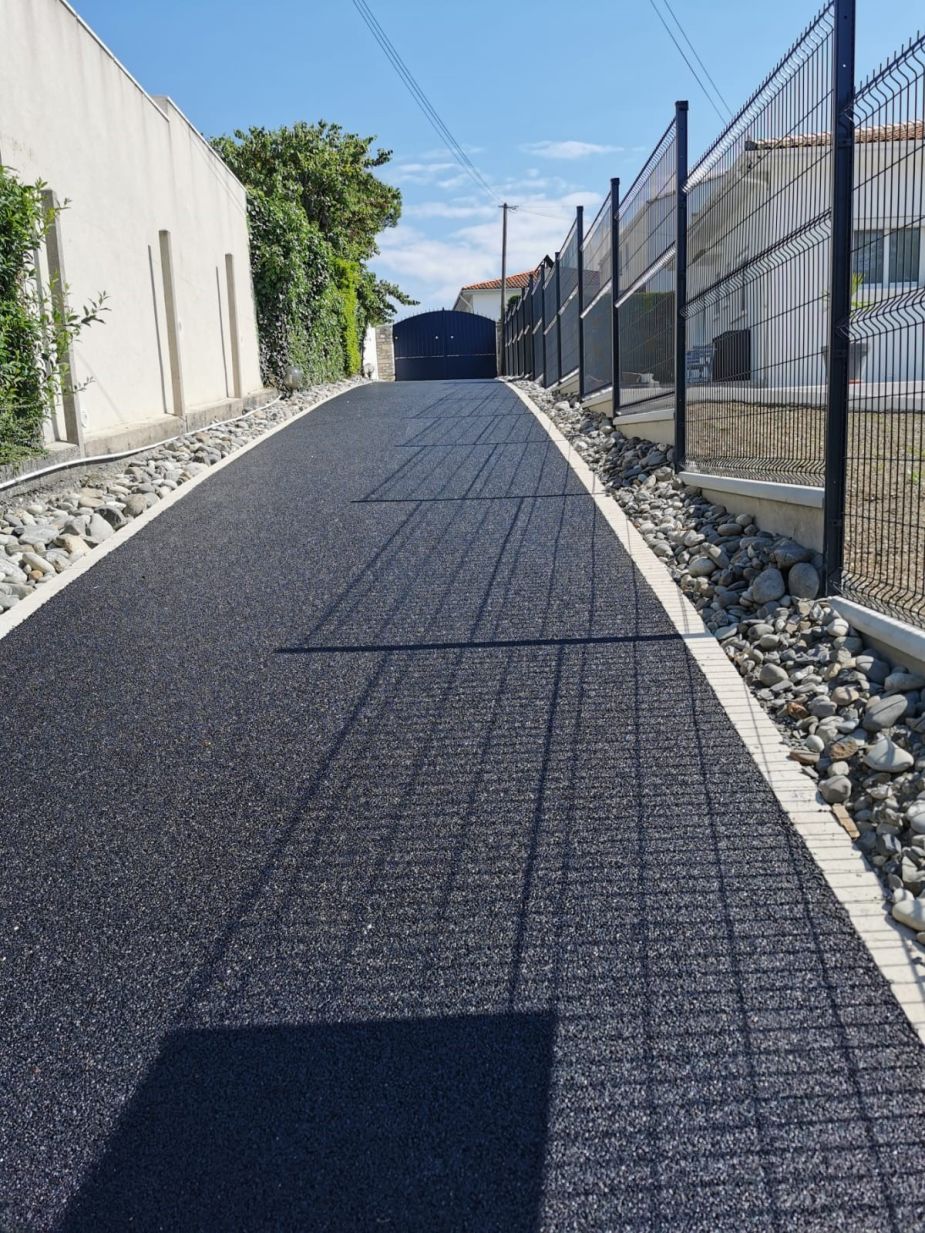 D’une allée en gravillon simple, notre client ne voulait plus d’entretien et d’arrachage des mauvaises herbes. Il a donc opté pour l’enrobé noir.