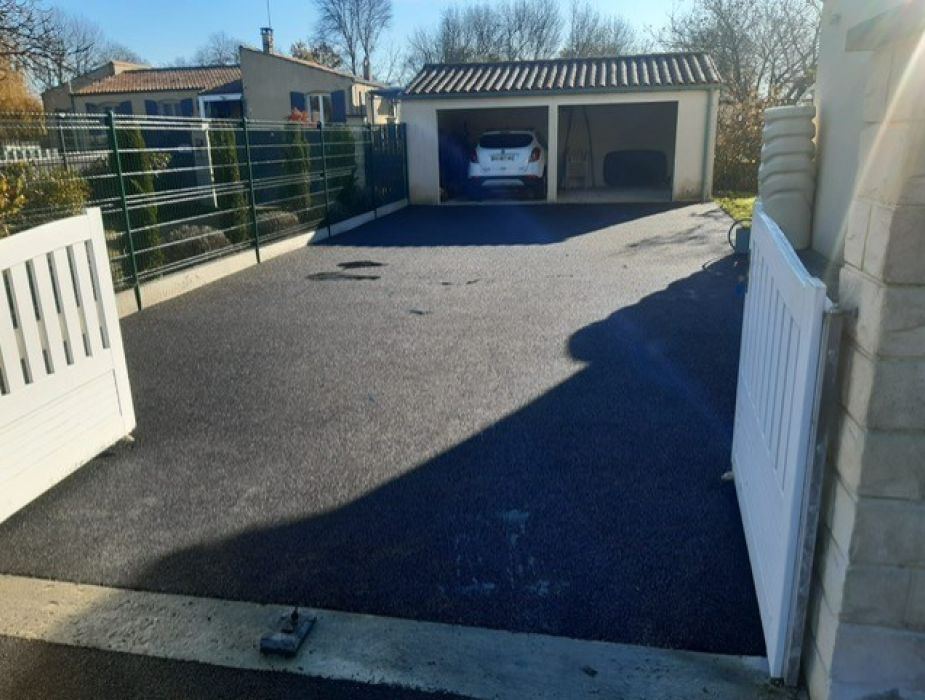 Nous avons réalisé un Goudronnage afin de permettre à notre client de ne plus s’occuper du desherbage et du nettoyage régulier de son empierrement gravillonné.