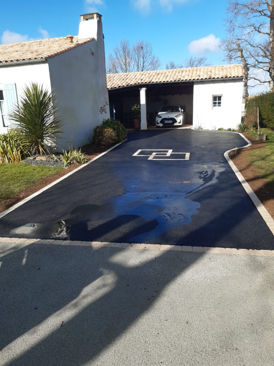 Nous luis avons conseillé l’enrobé car c’est un matériau solide , ne nécessitant aucun entretien et qui saura accompagné de pavés mettre en valeur vos extérieurs