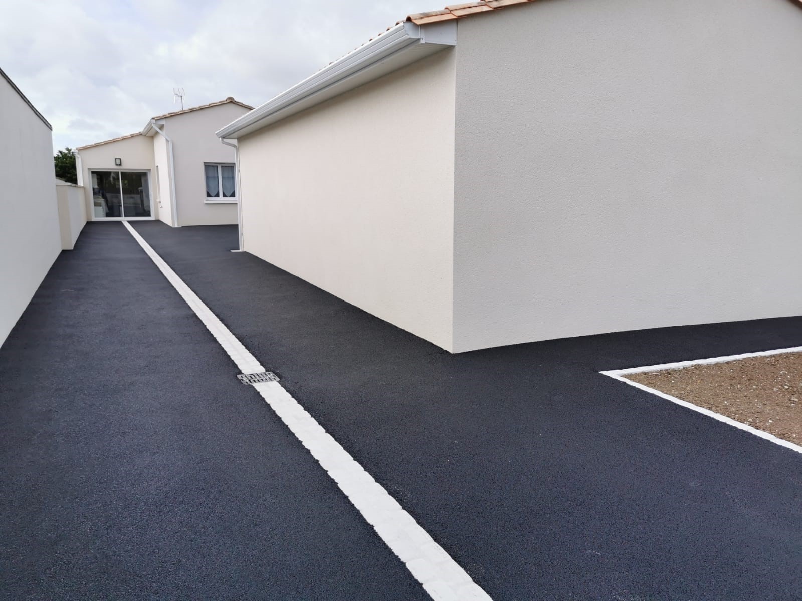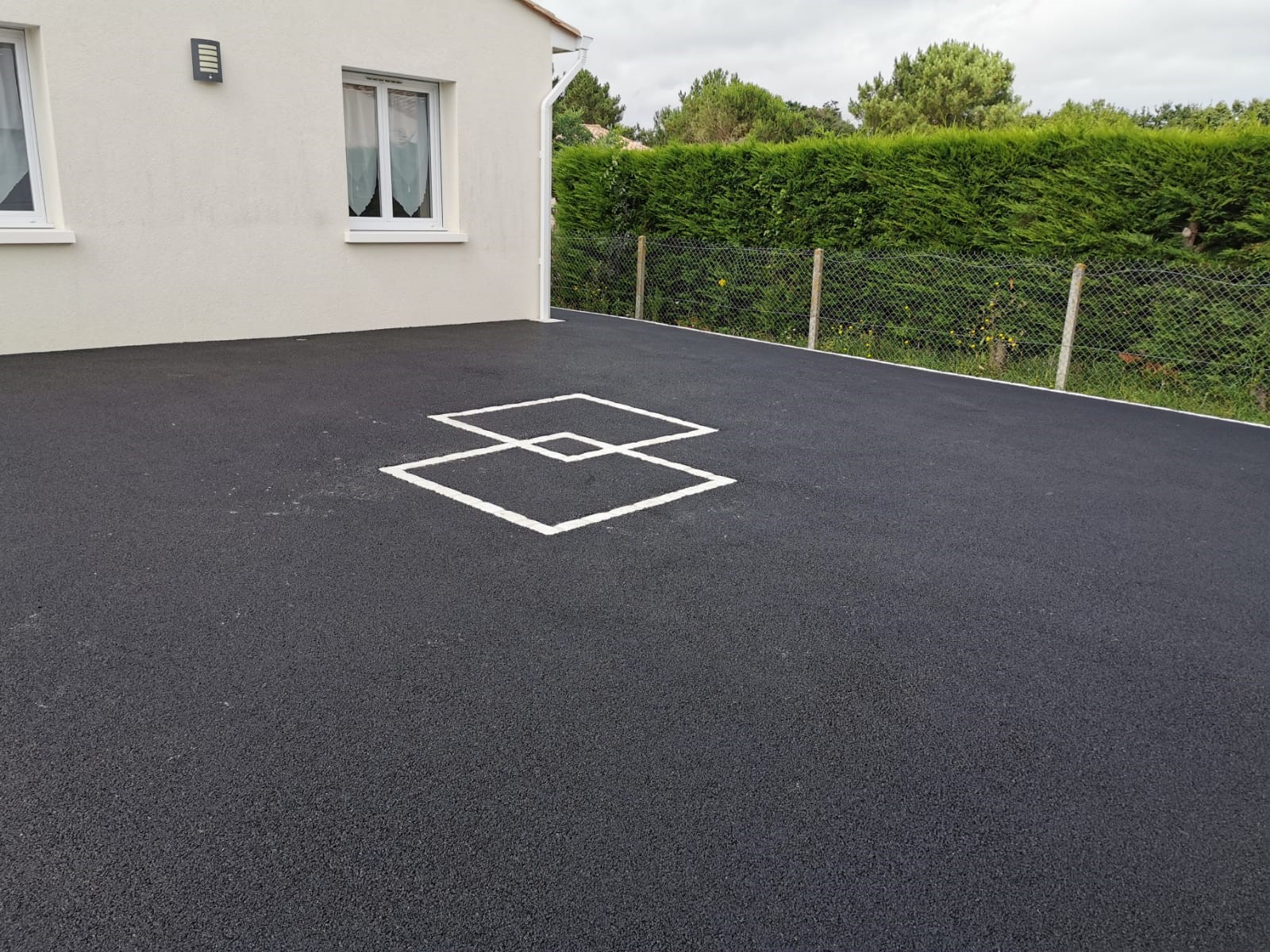 Nos clients en avaient assez de leur cour avec un vieux revêtement, ils nous ont demandé de la moderniser mais sans entretien. Nous leur avons proposé un enrobé noir à chaud qui allie durabilité, qualité et prix.