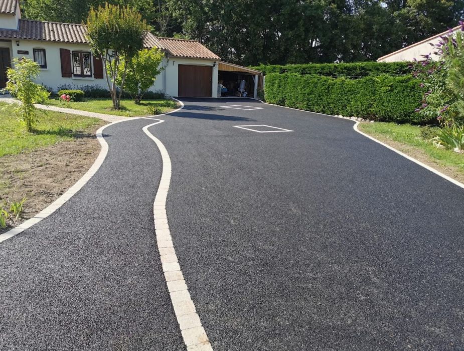 Le résultat est magnifique d’autant que nous l’avons agrémenté de Pavés. L’enrobé existe en noir et en rouge.