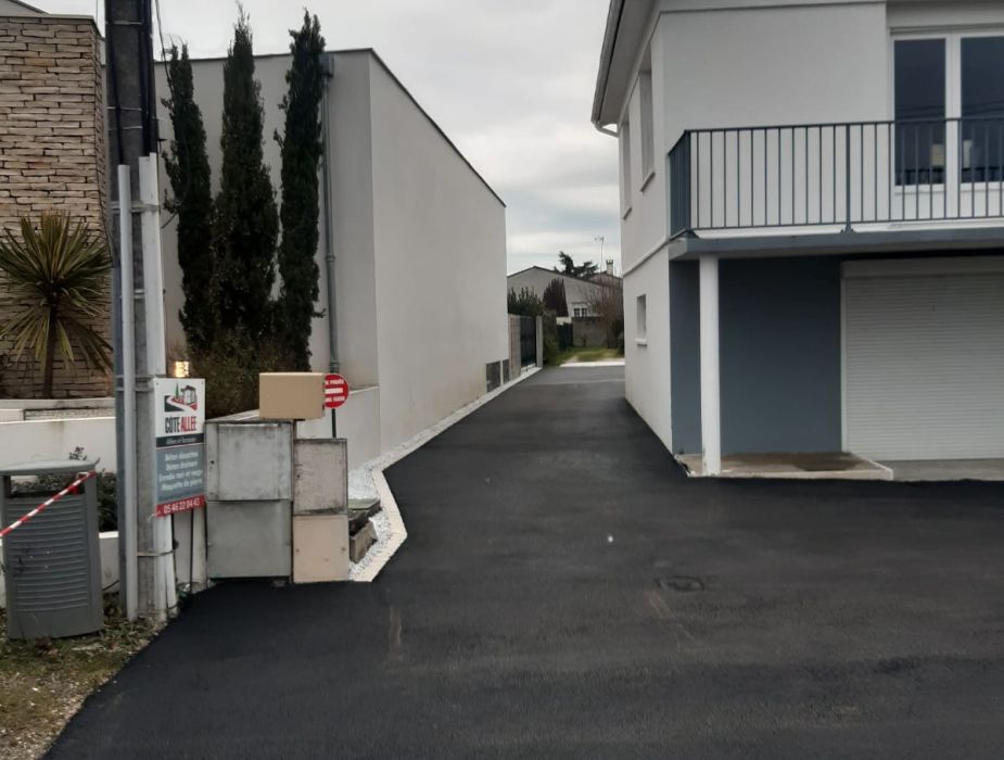 Cette entreprise avait un accès vieillissant et peu flatteur. Nous avons réalisé un enrobé noir résistant, durable.