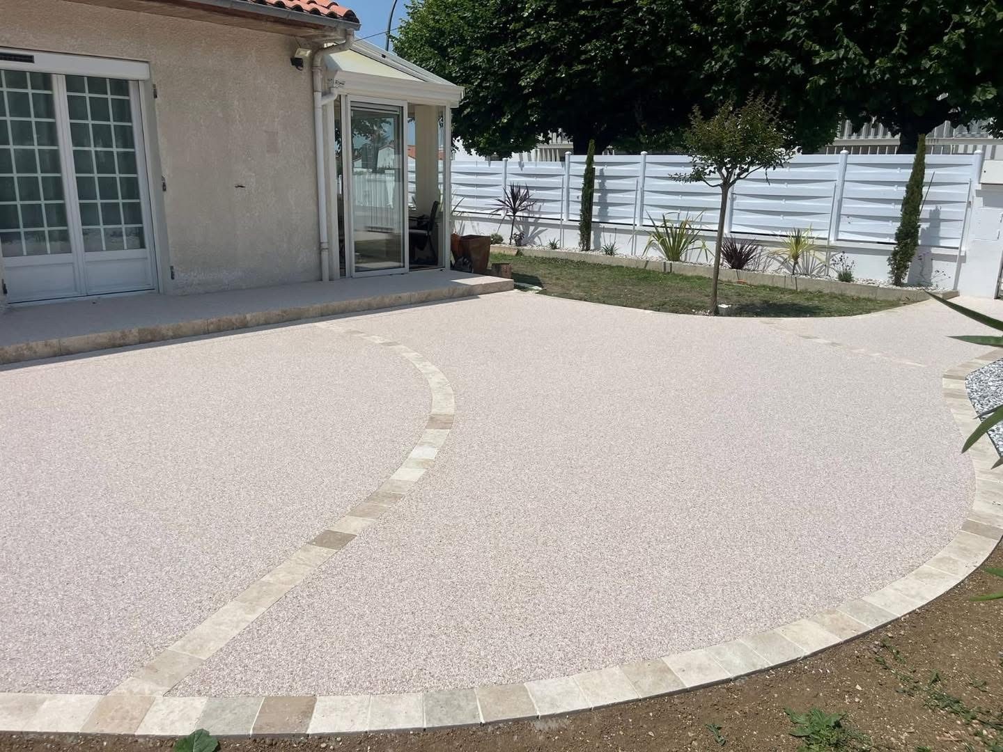 Nous avons créer cette terrasse en gagnant sur l’espace non utilisé devant la maison. La terrasse est délimitée et entrecoupée de pavés en travertin.