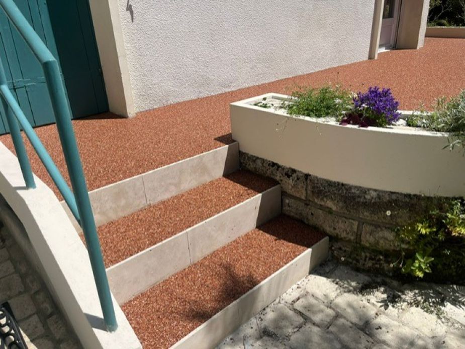 La moquette de pierre a permis à cette terrasse vieillissante de retrouver un aspect moderne et en même temps chaleureux.