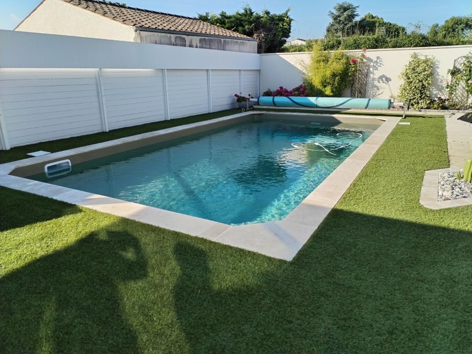 Réalisation d’une piscine et de son aménagement en gazon synthétique